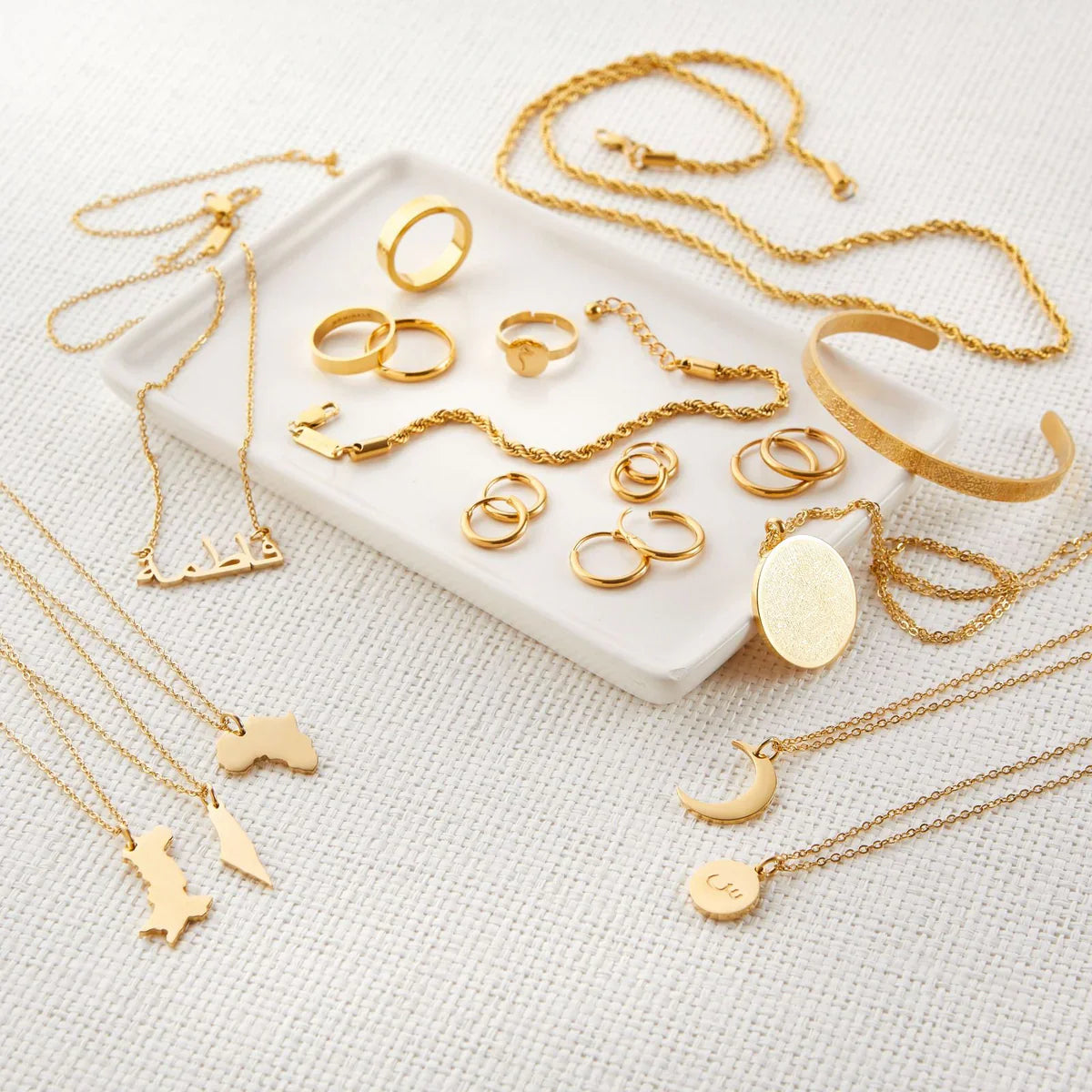 Onze goud-plated sieraden zijn gecoat in echt 18k goud, over premium roestvrij staal - daarna werken we je sieraad af met onze anti-vernis coating, om de duurzaamheid te maximaliseren en ervoor te zorgen dat het nooit zijn glans verliest.